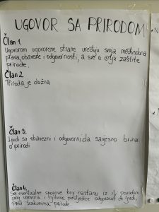 Tokom završnog susreta učenici su finalizirali svoje promotivne plakate, ostavljajući snažne i jasne poruke o potrebi zaštite prirode. Kroz simbolični „Ugovor s prirodom“ još jednom su potvrdili spremnost na međusobno uvažavanje, odgovornost i aktivno djelovanje.
